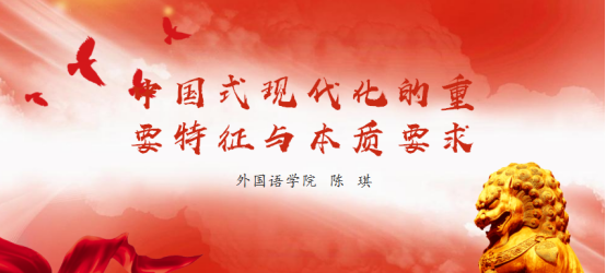 陈琪首先为大家讲授了以“中国式现代化的重要特征与本质要求”为题的党课,重点从中国式现代化的重要特征及本质要求展开讲解。中国的现代化是人口规模巨大的现代化;是全体人民共同富裕的现代化;是物质文明和精神文明相协调的现代化;是人与自然和谐共生的现代化;是走和平发展道路的现代化。本质要求是坚持中国共产党领导,坚持中国特色社会主义,实现高质量发展,发展全过程人民民主,丰富人民精神世界,实现全体人民共同富裕,促进人与自然和谐共生,推动构建人类命运共同体,创造人类文明新形态。