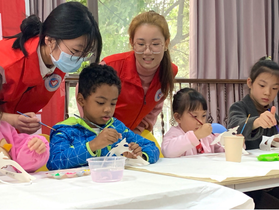 本次活动总共分为三个部分。首先,孩子们用各色颜料进行自由创作,在白色的面具上画出彩色的图案,也描绘着心中的喜悦;紧接着便是英语单词的教学时间,志愿者给孩子们教了二十个较为简单的词汇,从各种职业到各类水果再到各个颜色,是孩子们容易理解并接受的知识,让他们在学习中认识生活;接着就到了兔子舞和英文歌的时间,志愿者们带着孩子们一起唱歌跳舞,歌舞的流转编织出了童真的美好;最后是数糖果的游戏,年纪尚小的孩子们大多都能用英文进行十以内的数数,正确数出糖果数量的孩子们都得到了糖果的奖励。除了甜甜的糖果,孩子们和志愿者们更是收获了甜甜的记忆。
