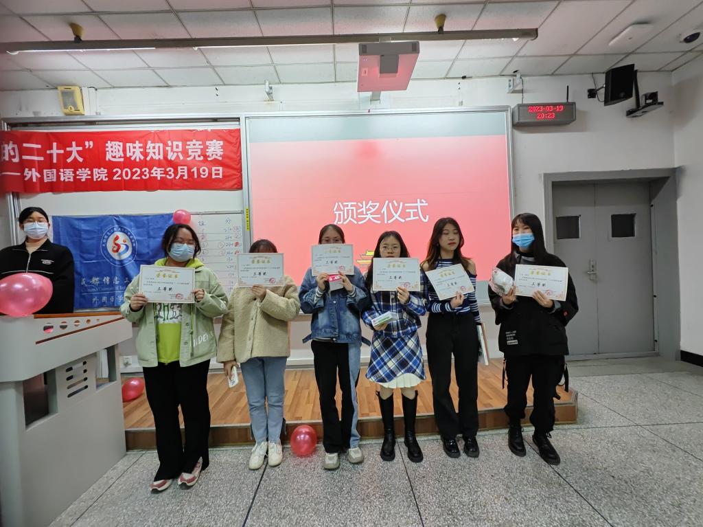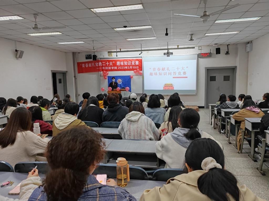 2023年3月19日晚,我院在航空港校区1106教室开展了“青春献礼党的二十大”趣味知识竞赛。我院团委学生会工作人员、参赛人员和观众准时到场参加。