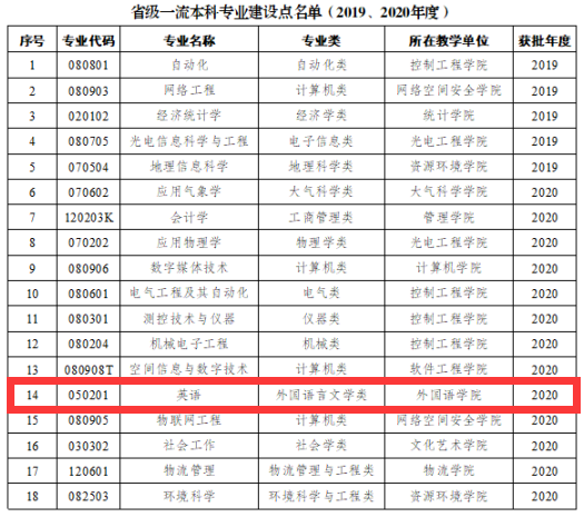近日,教育部发布《关于公布2020年度国家级和省级一流本科专业建设点名单的通知》(教高厅函〔2021〕7号), bv伟德国际体育官方网站英语专业成功入选省级一流本科专业建设点。